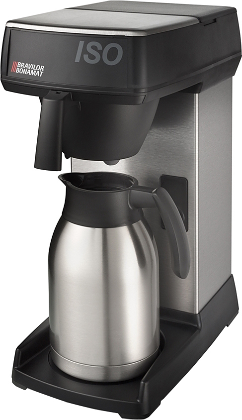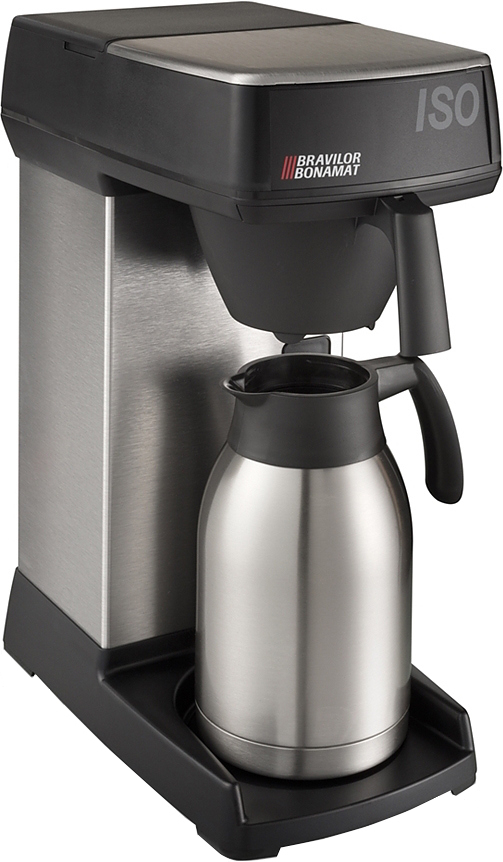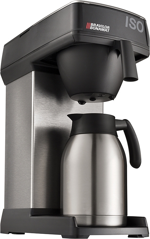 Капельная кофеварка BRAVILOR BONAMAT Iso заливного типа предназначена для приготовления фильтр-кофе («американо») из молотых зёрен. Корпус выполнен из нержавеющей стали с пластиковыми вставками. Рекомендуется к применению в частных домах и квартирах.