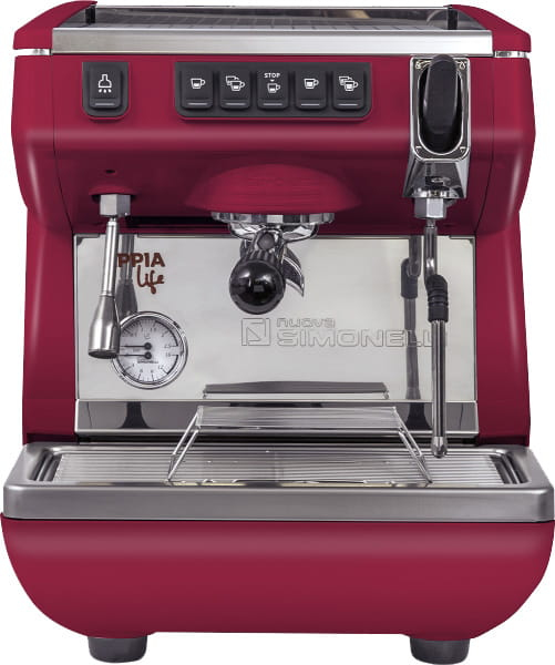 Рожковая автоматическая кофемашина NUOVA SIMONELLI Appia Life 1Gr V с подключением к водопроводу предназначена для приготовления эспрессо и капучино на основе молотого кофе. Оснащена одной высокой термокомпенсированной группой. Имеет кран для подачи горячей воды и паровой кран из нержавеющей стали с системой PUSH&PULL. Основание и боковые панели изготовлены из ABS-пластика красного цвета, задняя панель со вставкой из стали, рабочая поверхность – из нержавеющей стали, бойлер – из меди с теплоизоляцией Drytex Thermal.