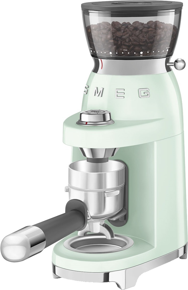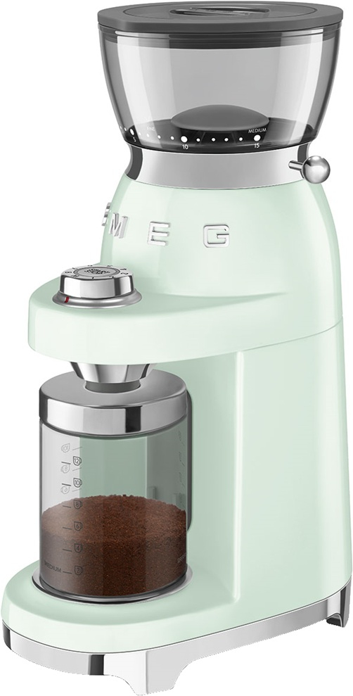 Электрическая кофемолка SMEG CGF03PGEU предназначена для мгновенного помола кофейных зёрен для последующего приготовления кофе и различных напитков на его основе. Оснащена съёмными коническими жерновами. Имеет резервуар для зёрен с системой закручивания и блокировки. Корпус изготовлен из пластика, жернова – из нержавеющей стали, резервуар для зёрен и контейнер для молотого кофе – из пластика. Рекомендуется к применению в кофейнях, кафе, ресторанах и на других предприятиях общественного питания и торговли, а также в домашних условиях.