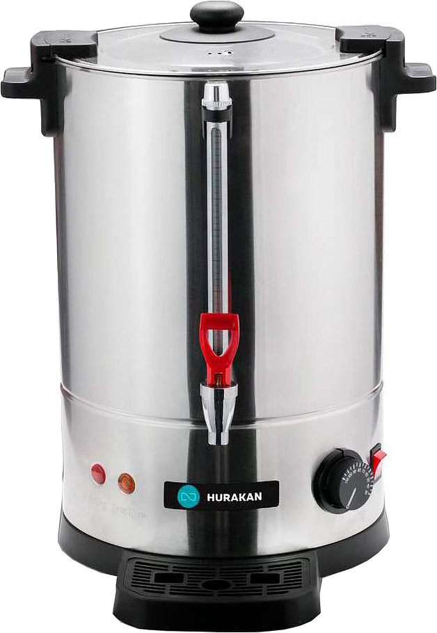 Наливной электрический кипятильник HURAKAN HKN‑HVC35 предназначен для нагрева и кипячения воды, а также поддержания её в горячем состоянии. Не требует подключения к водопроводу. Оснащён одним краном, имеет терморегулятор для изменения температуры. Корпус выполнен из нержавеющей стали, сливной кран – из меди, вентиль и ручки – из пластика.