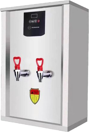 Проточный электрический кипятильник HURAKAN HKN‑HVZ120MDHC предназначен для нагрева и кипячения воды, а также поддержания её в горячем состоянии. Требуется подключение к водопроводу. Оснащён двумя кранами, имеет электромеханическую панель управления с дисплеем. Корпус выполнен из нержавеющей стали.