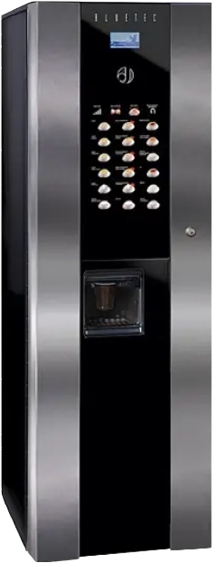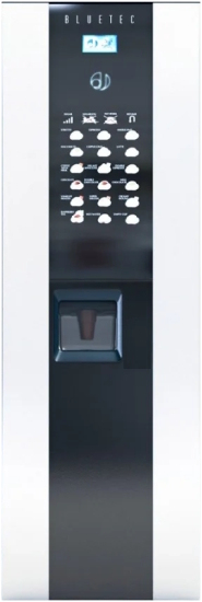 чКофейный торговый (вендинговый) автомат JOFEMAR Bluetec G30 предназначен для приготовления эспрессо и капучино на основе зернового кофе, а также других напитков с использованием различных растворимых ингредиентов. Позволяет потребителю самостоятельно приготовить выбранный напиток без привлечения торгового персонала. Корпус изготовлен из чёрного стекла и нержавеющей стали толщиной 1.5 мм с трехточечным замком, окрашенной специальной антивандальной краской.