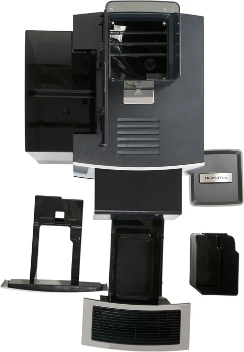 Суперавтоматическая кофемашина DR.COFFEE PROXIMA F11 Pro Big Plus с подключением к водопроводу предназначена для приготовления различных кофейных напитков на основе молотого или зернового кофе. Оснащена одной регулируемой группой. Имеет автоматический капучинатор, позволяющий приготовить напитки с добавлением молока. Корпус, контейнеры и заварное устройство выполнены из пластика, бойлеры – из алюминия, жернова кофемолки – из керамики.
