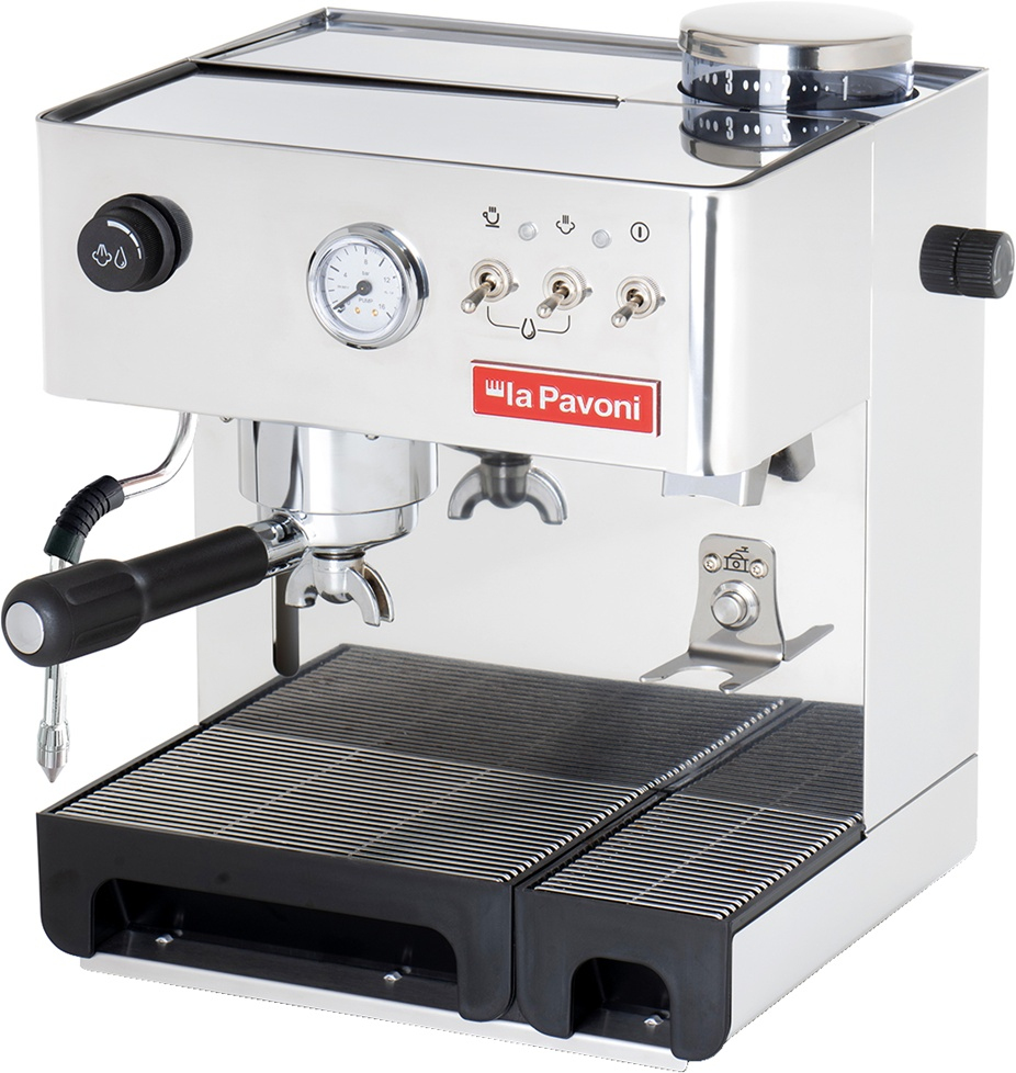Рожковая полуавтоматическая кофемашина LA PAVONI LPCDMB02EU предназначена для приготовления различных напитков на основе молотого кофе. Оснащена одной группой. Корпус, капучинатор и подогреватель чашек – из нержавеющей стали, заварочный блок – из латуни.