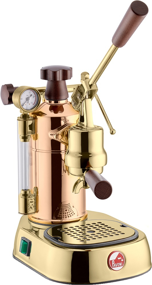 Рожковая леверная кофемашина LA PAVONI LPLPRG01EU предназначена для приготовления напитков на основе молотого кофе. Подходит для приготовления чая и горячего шоколада. Оснащена одной группой. Имеет механическое управление. Нескользящие ножки гарантируют устойчивость на любой поверхности. Корпус изготовлен из латуни; капучинатор – из хромированной латуни; основание и рычаг – из стали; поддон – из ABS пластика; держатель чашек – из нержавеющей стали; рукоять и кнопка подачи пара – из дерева.