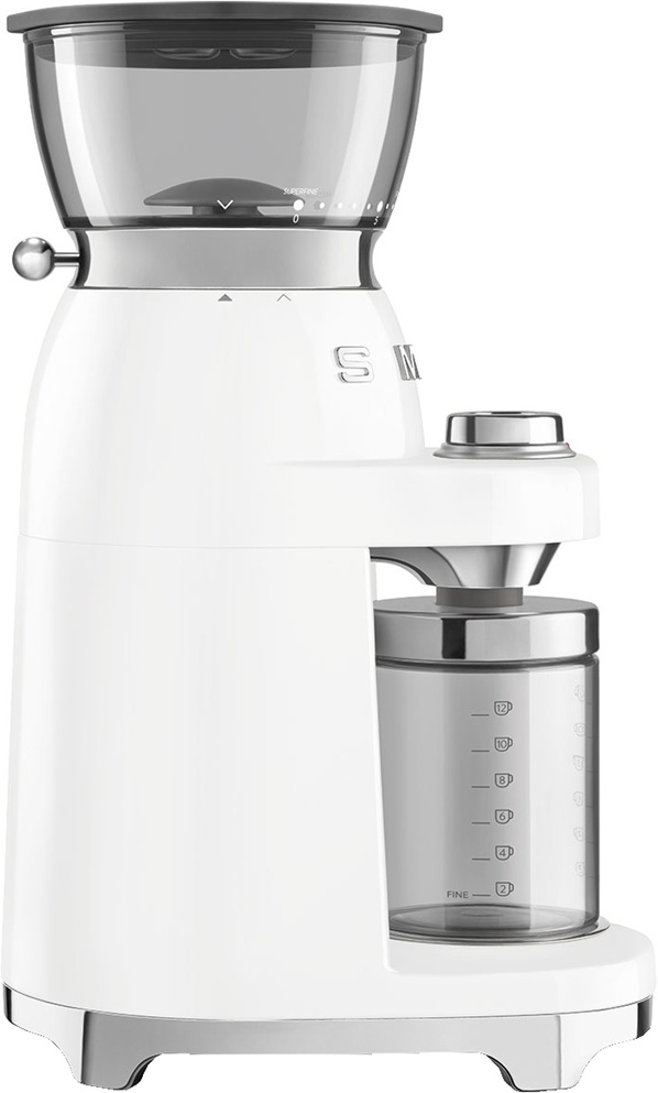 Электрическая кофемолка SMEG CGF03WHEU предназначена для мгновенного помола кофейных зёрен для последующего приготовления кофе и различных напитков на его основе. Оснащена съёмными коническими жерновами. Имеет резервуар для зёрен с системой закручивания и блокировки. Корпус изготовлен из пластика, жернова – из нержавеющей стали, резервуар для зёрен и контейнер для молотого кофе – из пластика. Рекомендуется к применению в кофейнях, кафе, ресторанах и на других предприятиях общественного питания и торговли, а также в домашних условиях.